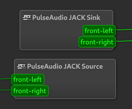 To verify that the link loaded succesfully, click Graph in QjackCtl. You should see these 2 boxes:
